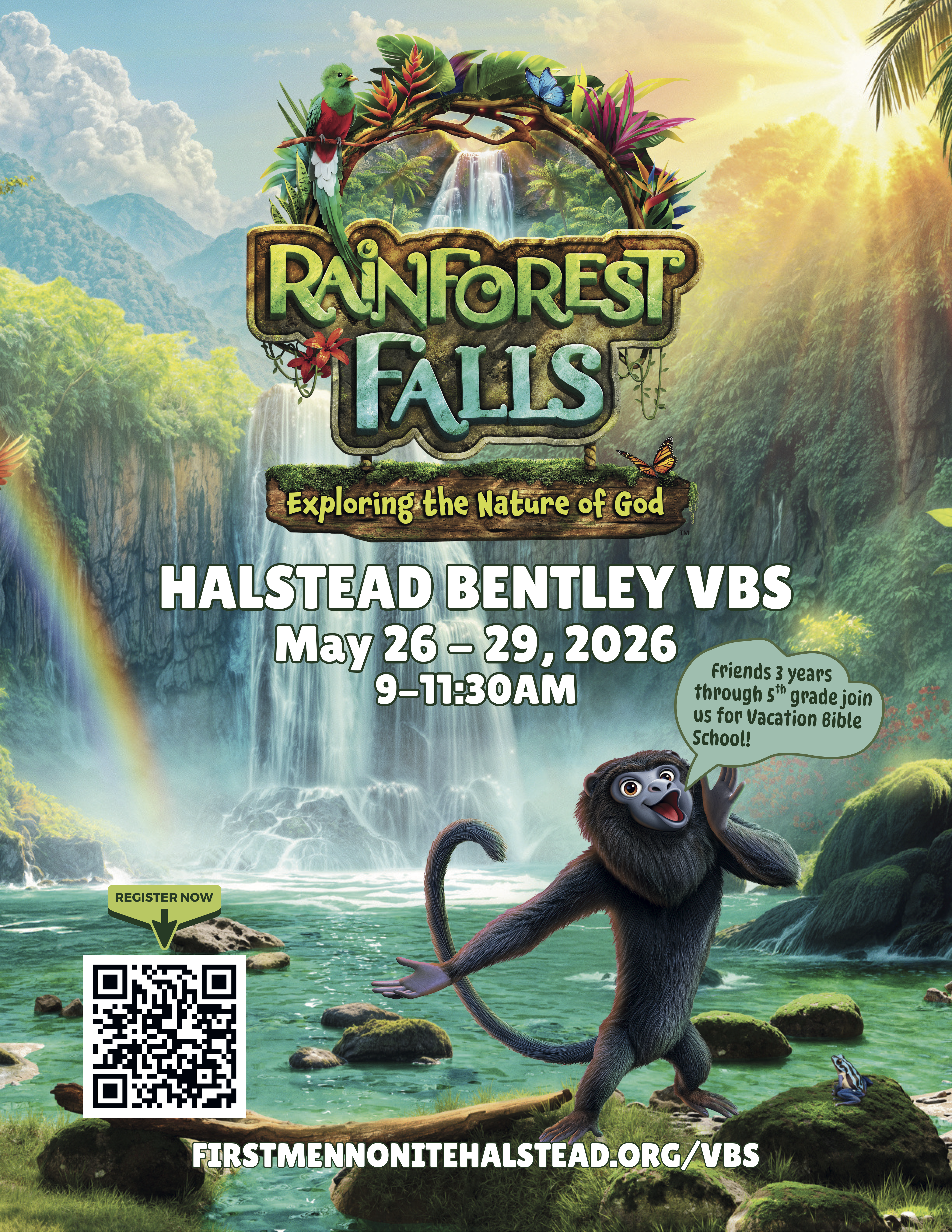 Step through the mist into Rainforest Falls, overflowing with wild waterfalls, towering trees and colorful creatures. Beneath a canopy of chattering birds and howling monkeys, kids plunge into a life-long adventure, discovering the nature of God, and exploring what it means to be rooted in relationship with their creator, a safe place in life’s storms.